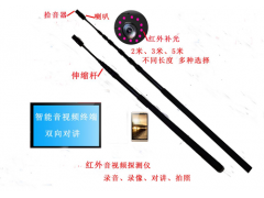 产品简介:音视频录音录像双向对讲红外音视频探测仪是北京中世光科技有限公司的主营产品,一款WIFI无线安卓系统触摸智能伸缩式音视频探测仪,带拍照、录像、录音、摄像头双向对讲的伸缩红外视频探探测仪、视频生命探测仪,摄像头采用可360度卷曲的伸缩式软管结构,可任意角度调节的广角镜头,携带方便。采用安卓智能触摸屏的多功能高清播放液晶显示屏,可以录像、拍照、录音、对讲并让搜索结果更清晰、直观显示。是一款广泛用于安检、反恐、地震后的生命可视搜索工具。摄像头自带有红外补光,可用于暗处或夜间使用,轻便式伸缩管,可双手操作检查高处、车子、桌子、凳子底部或集装箱、火车厢、等高处特殊场合是否有异常。